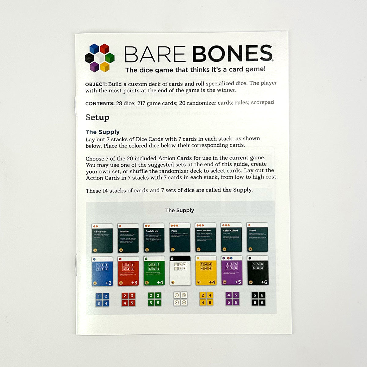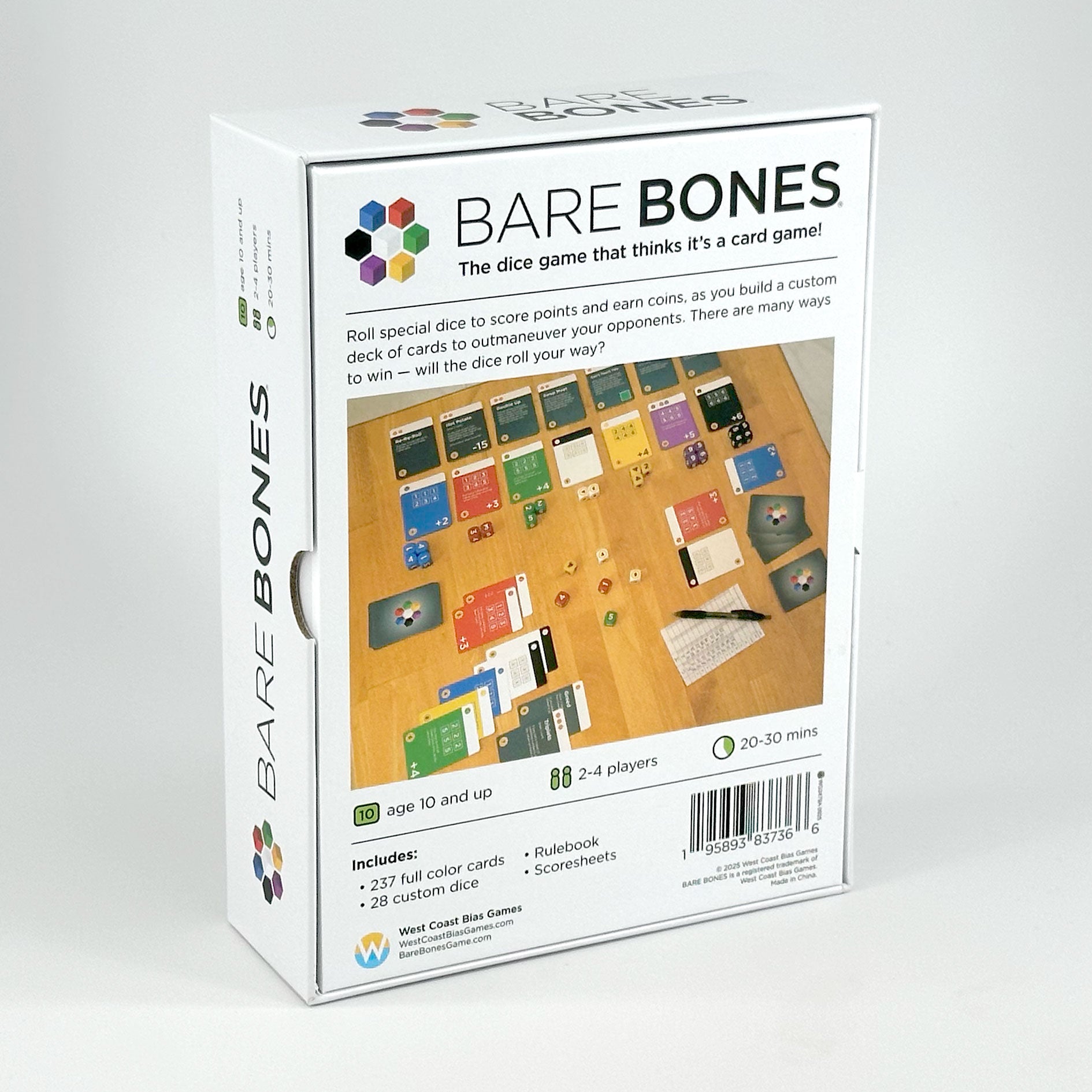 Bare Bones was inspired by many of the classic dice and card games of our youth, with an emphasis on simple mechanics, bright colors, and high replayability.