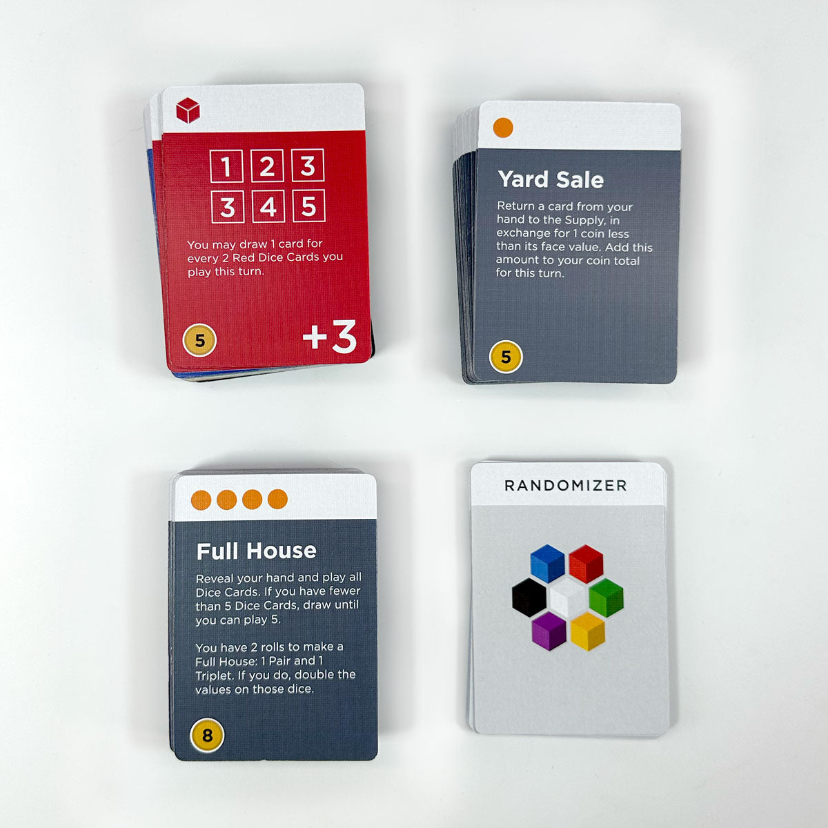 Roll special dice to score points and earn coins, as you build a custom deck of cards to outmaneuver your opponents. There are many ways to win — will the dice roll your way?